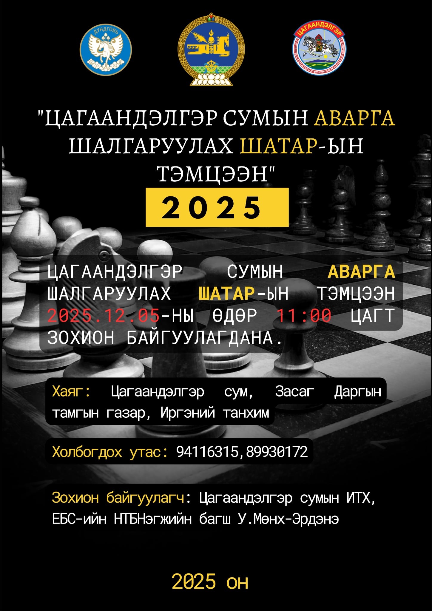 Монгол Улсын Үндсэн хуулийн өдрийг тохиолдуулан Шатар сонирхогчдын дунд 2025 оны СУМЫН АВАРГА шалгаруулах тэмцээнийг зохион байгуулна.